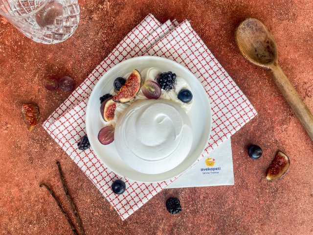 Figue, myrtille, mûre, raisin, mascarpone, crème végétale, oeuf, vanille, sucre Lactose, oeuf, soja, traces possibles de fruits à coque