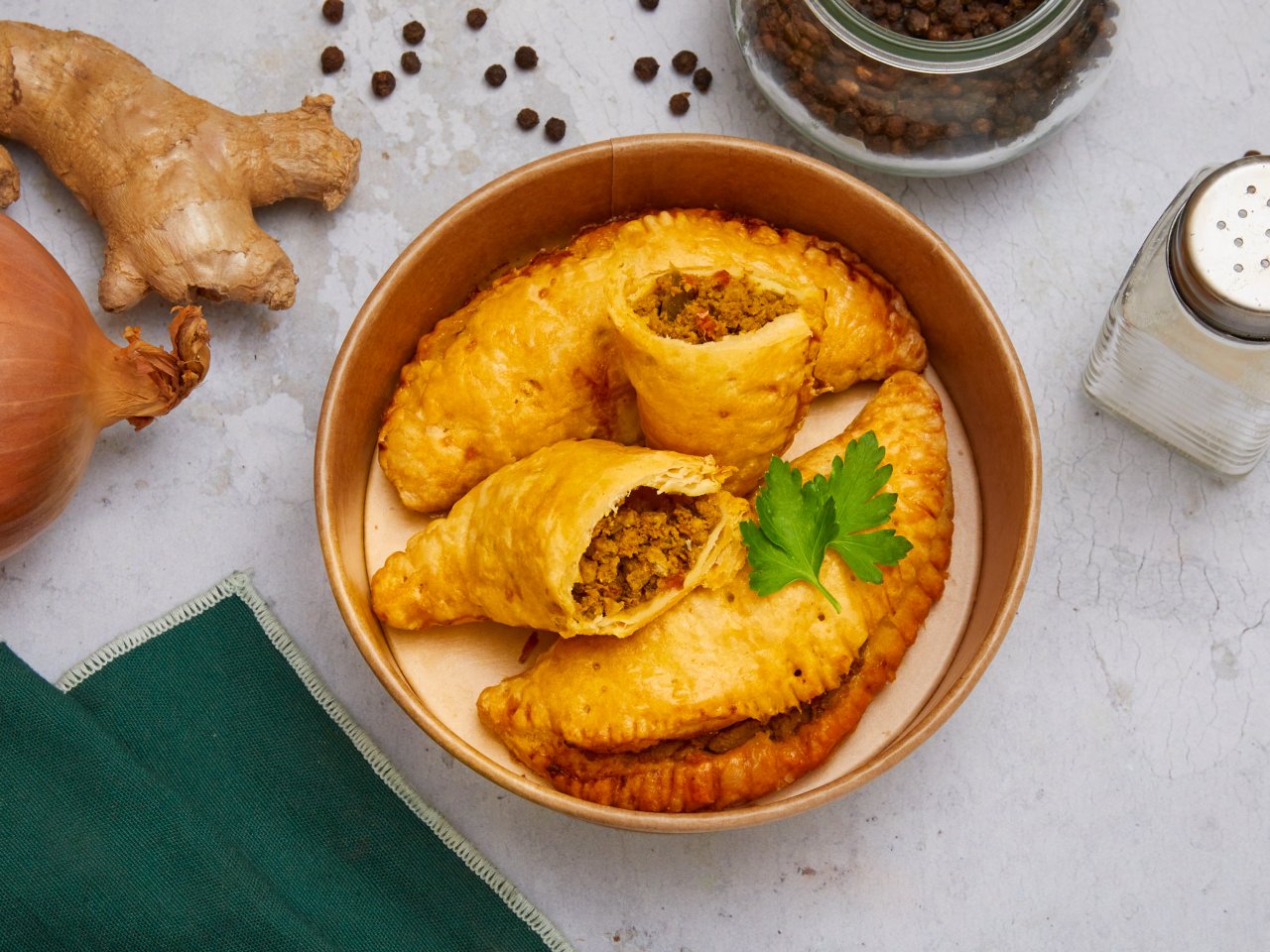 Bœuf, carotte, tomate, persil, oignon, ail, gingembre, beurre, œuf, farine, huile de tournesol, cumin, cannelle, poivre, sel