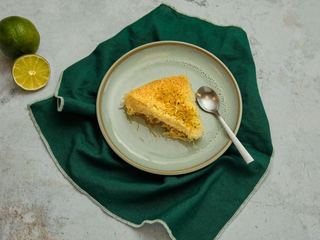 Kunafa (gluten), lait (lactose), crème fraîche, beurre, amidon de maïs, citron, eau de fleur d'oranger, vanille, sucre, traces possibles d'oeuf et fruits à coque